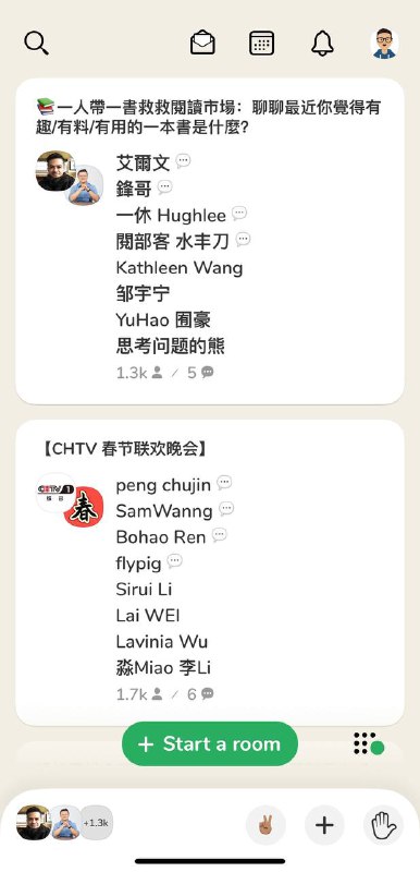 我在Clubhouse的感觉就是进入了「沙龙一条街」,在大学有一段时间会组织也参与各种各样的线下沙龙,到了周五周六一层楼的教室可能同时有六七个沙龙进行。不用买票你就直接进去听,上面嘉宾们在分享,有问题随时举手提问,听一会不感兴趣从后门直接走。